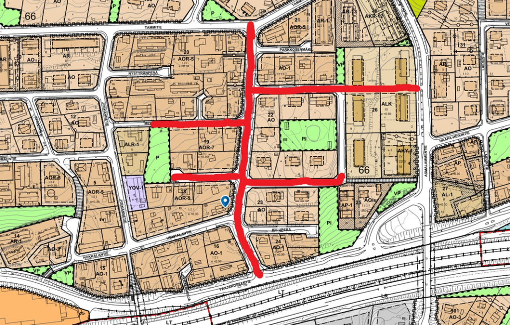 - Läpiajoliikennettä Parkkosentieltä Vaajakoskentielle tai Tammitielle suositellaan välttämään.
