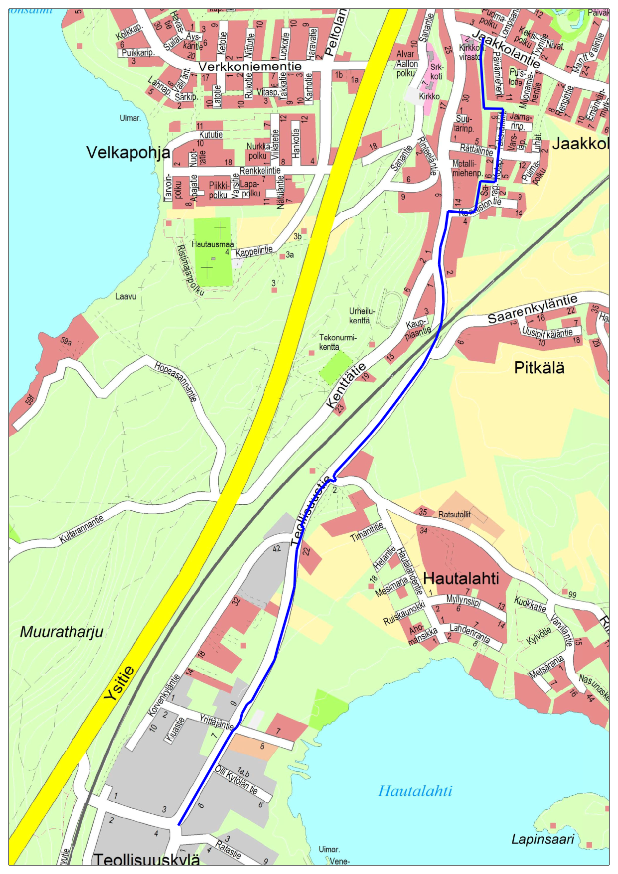 Kaukolämpölinjaa rakennetaan vaiheittain Taksvärkkitiellä, Sarapolulla, Kannistontiellä ja Muuramentiellä päättyen Teollisuustielle. Jaakkolantien ja Taksvärkkitien välillä linja rakennetaan puistokaistaleen läpi.